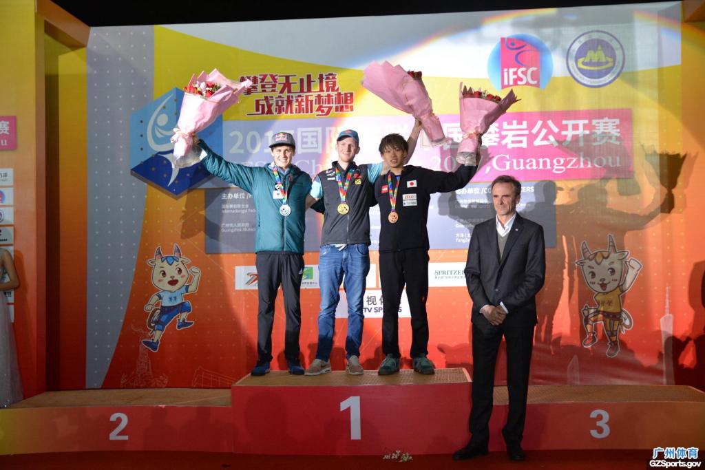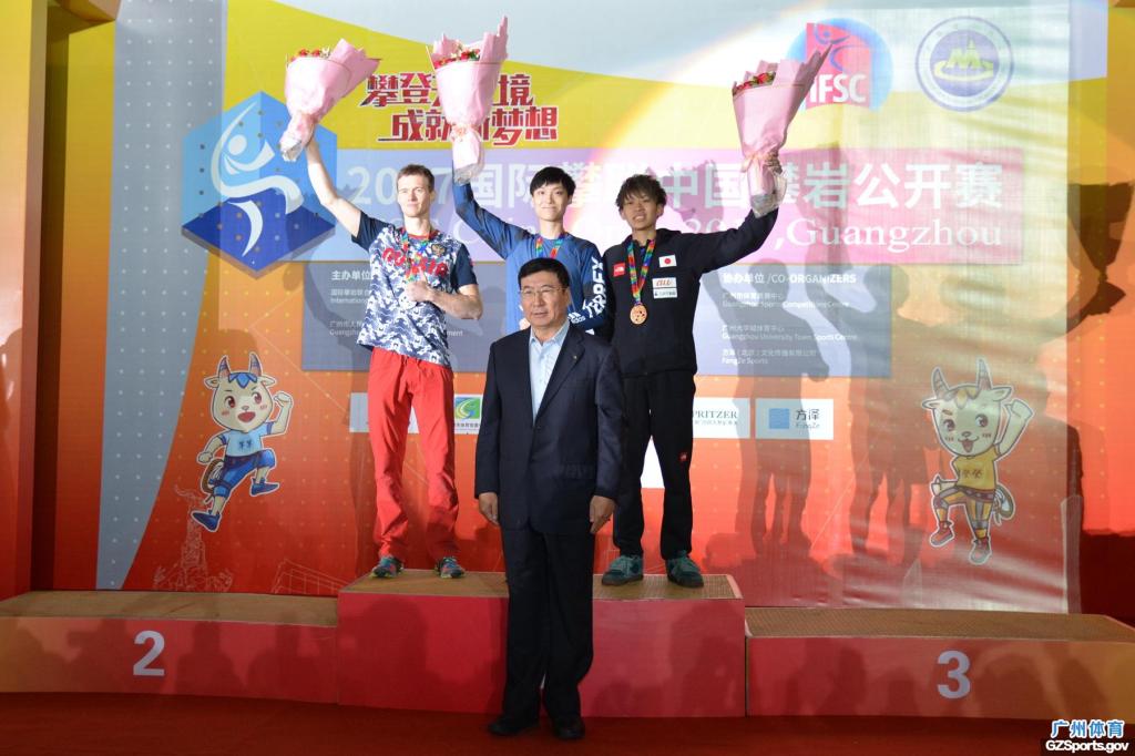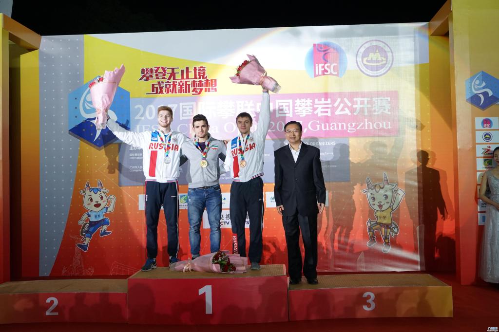 11月19日, 由国际攀岩联合会、广州市人民政府主办,国家体育总局登山运动管理中心、中国登山协会、壹贰博-12bet壹贰博 承办,壹贰博 竞赛中心、广州大学城体育中心协办的2017国际攀联中国攀岩公开赛精彩圆满在广州大学城体育中心攀岩场落下帷幕。组委会主任、国家体育总局登山运动管理中心主任、中国登山协会主席李致新, 广东省体育局局长王禹平,组委会常务副主任、广州市政府副秘书长张建华,组委会常务副主任、壹贰博-12bet壹贰博 局长罗京军和国际攀联主席马尔科等为6个项目获得前三名的运动员颁奖。