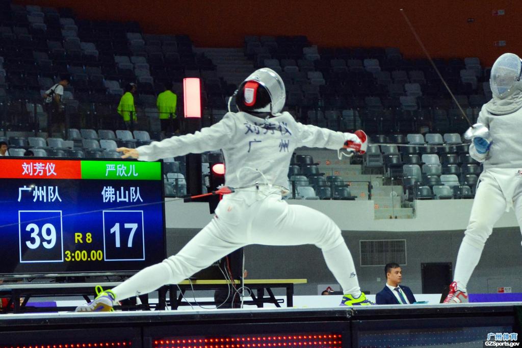 截止到目前,广州击剑队在本届省运会比赛上共获得10金5银3铜,在奖牌榜上遥遥领先。