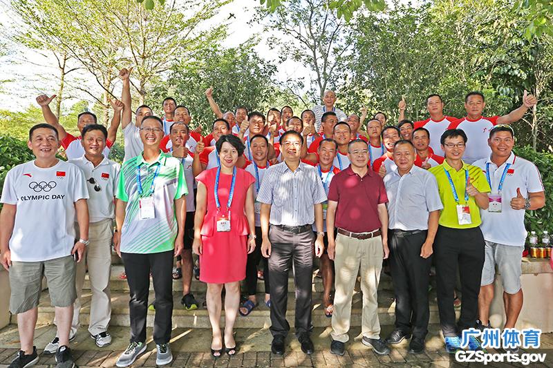 罗京军一行深入教练员、运动员当中,了解他们的备战、参赛和后勤保障等情况。在了解到此次广州龙舟队的成员来自各行各业,既有都市白领、村民,又有大学生、中老年人时,罗京军高兴地表示:赛龙舟要的就是这种全民参与的热烈氛围,比赛结果是次要,大家共同参与体育赛事的快乐过程才是最重要的。罗京军了解到广州龙舟队的男女成员主要来自南沙区横沥镇女子龙舟队和白云区人和镇六村男子龙舟队,女子队伍全部由“农村大妈”组成,最大的51岁、最小的41岁,是参赛队伍中年龄最大的一支队,参加过国内大大小小的龙舟比赛并获得佳绩,在前不久闭幕的第十三届全国运动会龙舟项目,队员陈群兴就作为广东龙舟女子队成员,获得了6金的好成绩;而男子队伍来自有着悠久的龙舟历的白云区人和镇,其中队员骆发洪也作为广东龙舟男子队成员在前不久闭幕的第十三届全国运动会龙舟项目获得了4金1铜的好成绩。罗京军当场给予表扬和肯定,说广州市龙舟运动的群众基础很好,近年来龙舟竞赛水平进一步提升,广州龙舟队多次在强手如林的竞赛中取得好成绩,离不开教练们的辛勤付出,更离不开在场运动员们的团结一心和敢打敢拼。同时,罗京军勉励广州龙舟队在接下来的比赛中严格遵守赛场纪律,继续发扬顽强拼搏精神,咬定目标,放下包袱,再接再厉,既要展现广州运动员的水平和实力,更要展示广州代表团的风采,为广州人民争光。