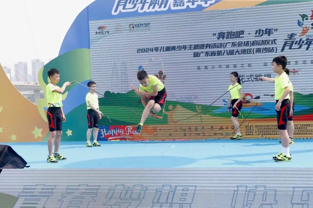 5月18日,“奔跑吧·少年”2024年儿童青少年主题健身活动(广东会场)启动仪式暨广东省第八届大湾区青少年体育嘉年华在广州市南沙区明珠湾灵山岛水舞广场举行。